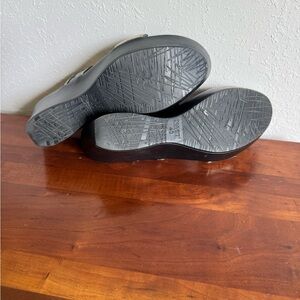 Good condition, some wear as shown, heel height: 3” 262713 formal special occasion prom bridesmaid wedding wedding guest homecoming black tie  grannycore beach coastal grandma summer platform