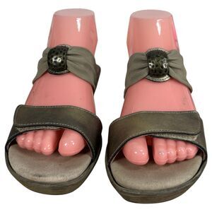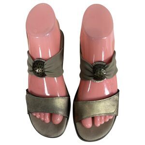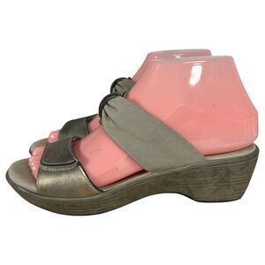 Naot Pinotage Ornament Leather Gold Taupe Wedge Sandals Size EU 37 US 6