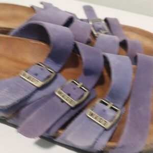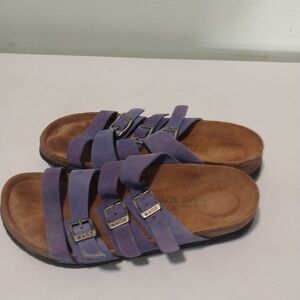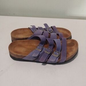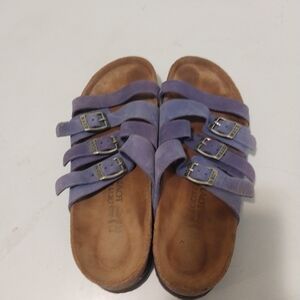 Stylish Naot sandals with multiple straps. Comfortable footbed. Perfect for casual wear.