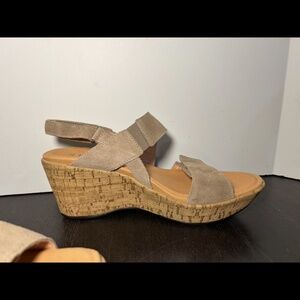 Naot Resort Sunrise Strappy Wedge Sandals Almond Suede Womans EU 39/US 8-8.5