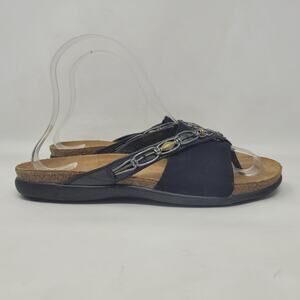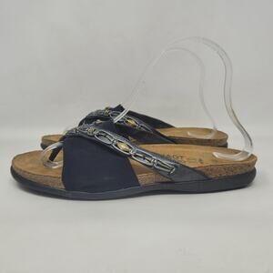 Naot Sandals EU39 US8 Black Thong Slip On Cork Footbed Comfort Jennifer Beaded