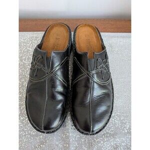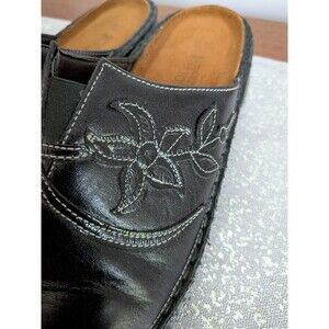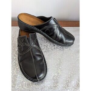 Naot Shoes Womens 41 (US 10-10.5)Madras Black Leather Floral Slip On Mule Clogs