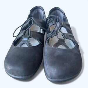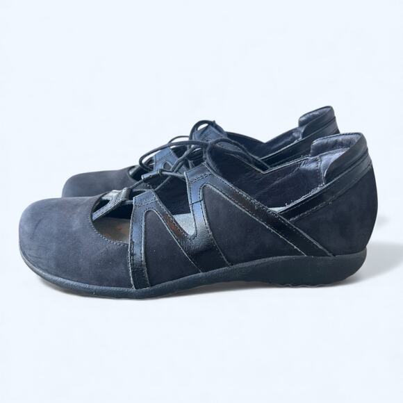 Naot Timu Black Suede Leather Lace Up Mary Jane Comfort Shoes Women's 39 EU