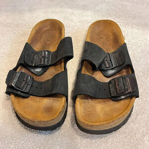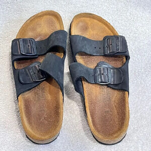 Naot Unisex Black Leather Two Straps Sandals 9" Buckle Slider Sz 36 / 36.5?