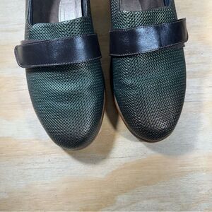 Step out in style with these elegant green leather Naot loafers. Perfect for any occasion, these shoes offer both comfort and sophistication.