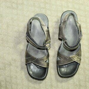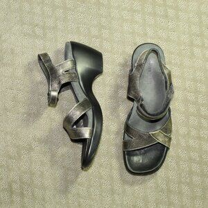 Naot Women's 7.5 Distressed Pewter 1" Platform 3" Heeled Sandals