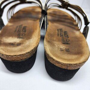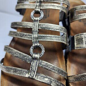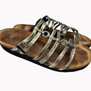 Naot Womens 8 Metallic Strappy Leather Sandals Size 39 Rhinestone rings