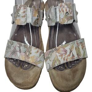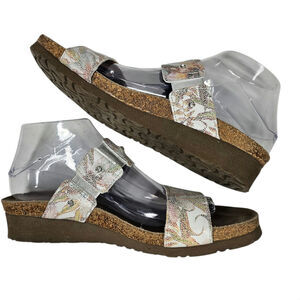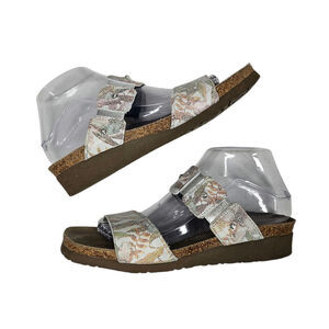This pair of Naot Ashley leather sandals in a floral print is in EXCELLENT PRE-OWNED CONDITION. It is EU Size 40, which the Naot website says to be equal to a US 9-9.5.
