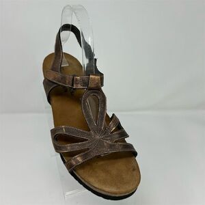 Naot Women's Gold Brown Metallic Bronze Leather Slingback Wedge Sandal Size 11 Strappy Casual Summer