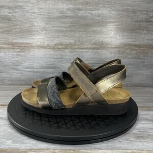 Naot Women’s Krista Pewter Brown Metallic Strappy Cork Footbed Sandals Size 6