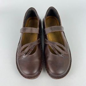 Naot Primrose brown leather mary jane comfort flats, size 38 / 7