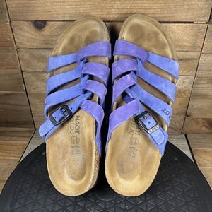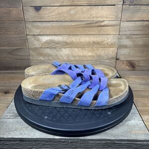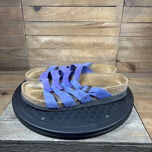 Naot Womens Size 7 Blue Purple Flatbed Sandals Strappy Adjustable Cork Slip On