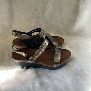 Naot metallic antique bronze wedge straps sandals Rhinestones accent EUR SZ40 pre owned in good used condition small transfer wears on the inner side and signs of wears on the inner soles see all pictures any questions please message E2