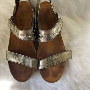 Naot metallic antique bronze wedge straps sandals Rhinestones accent EUR SZ40