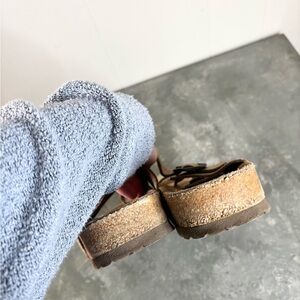 Naot santa barbara camel tan nubuck slip on buckle slide sandals size 9