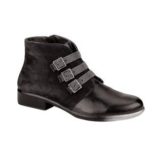 Naot Vardar Black Madras Leather & Suede Rivited 3 Strap Zip Booties