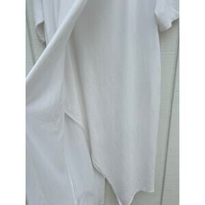 Ultra comfortable white loungewear dress, short sleeve, faux wrap front. Great for all day on the sofa... and still great for throwing on sandals or cute sneakers and running to the store! Has pockets.