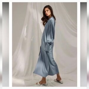 Known for its ultra-smooth sheeny finish - this drape shirt robe is a loungewear must-have. Inspired by the classic shirtdress, it features a robe cut, front-open button-down design. Complete with a notched collar and gathered long cuffs