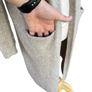 Nap Loungewear Relaxed Fit Long Cardigan Beige Open Front Pockets Cozy Warm Smll