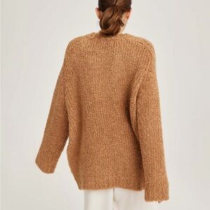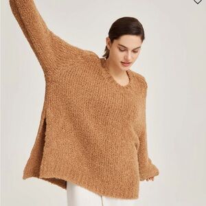 A plush fluffy knit, fleecy-soft, and snugly warm – perfect for all-day bundling. Offering slightly dropped shoulders with long-sleeves and rib-trim cuffs and neckline. Comfort is all within.