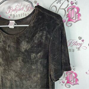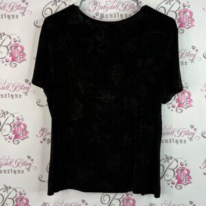 Discover elegance with this black shiny short sleeve top. With grey unique floral design. Vintage. Perfect for adding a touch of sophistication to your outfit. L. πβοΈπβ¨π©·ππ©΅