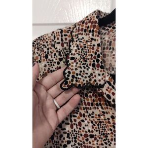 Napa Valley 100% Rayon brown spot print cookie cut hem button down. Good condition Size XL