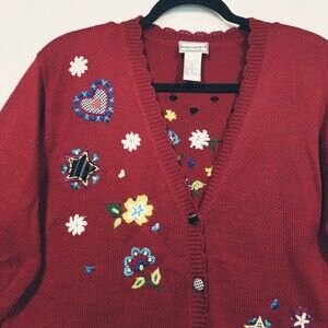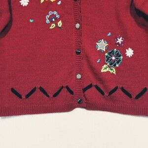 Vintage Napa Valley Size Small Grandma Cardigan Sweater Embroidered Floral Red Country Cottagecore Bohemian