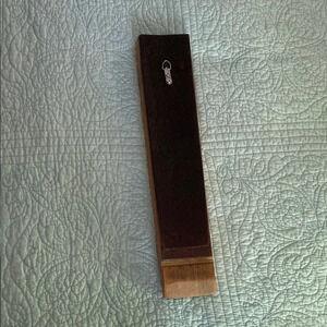 This wine cask piece purchased in the Napa Valley features the deep coloring from use on one side and the metal cask bindings in the other. Can be used in the wall as a clock mount or on a table as a holder for candles, vases, etc. The sturdy metal elements not only add a touch of elegance but also serve a functional purpose, making them a perfect addition to any room. Ideal for those looking to add a subtle yet impactful accent to their home decor. Measures 4x18.5x1”. Cutout measures 3” across.