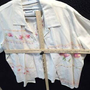 Napa Valley Womens 2pc Set Blazer With Top Egg Shell Size 1X Linen Blend Floral