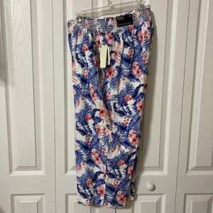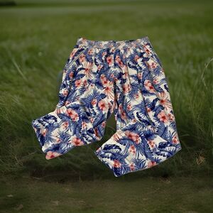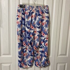 Napa Valley Women's Sz 2X Floral Capri Pants Pockets Elastic Waist Straight Leg