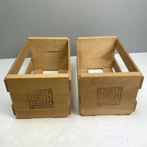 Napa Valley wooden storage crates to hold CDs, movies or video games. Matched pair. Approx 10" long x 5-1/2" tall x 6" deep.