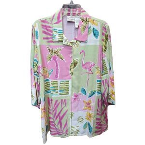 Napa Valley Women's Multi-Color 3/4 Sleeve Length Rayon Button Front Top Large