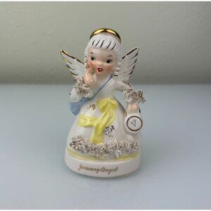 Napco Ceramic January Angel A1361 Figure Spaghetti Japan 4.5" Vintage Cute Gift