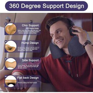 🧿PERFECT CHIN SUPPORT TRAVEL NECK PILLOW - This airplane pillow can better wrap your neck and free your chin, prevents the head from falling forward, relieves neck pain during travel.
