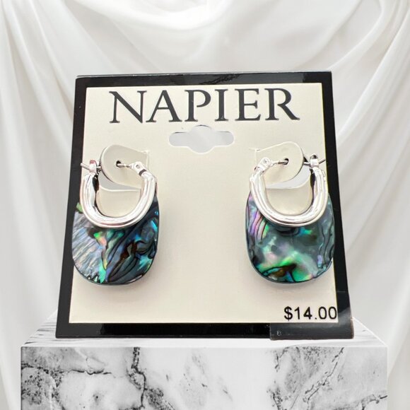 Elevate your style with these stunning Napier earrings. Crafted with silver-tone metal and faux abalone material, these earrings are sure to catch anyone's attention. The click-back closure makes them easy to wear and they come in a beautiful multicolor design. Perfect for any occasion, these dangle/drop earrings are a must-have for any fashion-forward individual.
