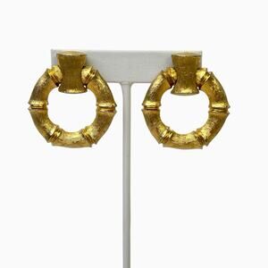 Bamboo Motif Textured Brushed Gold Tone Finish Statement Jewelry 1970s Vintage