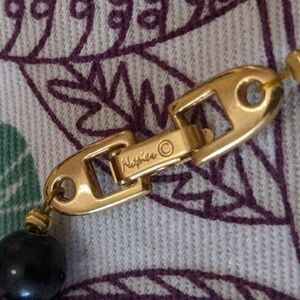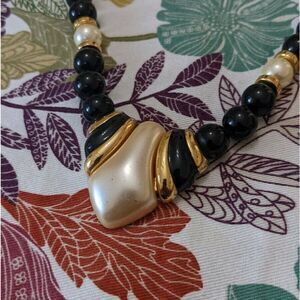 Napier Black & White Beaded Gold Tone Necklace Signed Vintage 24''
