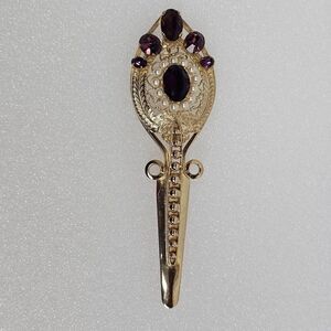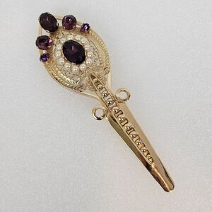 Napier Brooch Pin Large Sword Dagger Purple Rhinestone Pearl Art Deco Rare Vtg