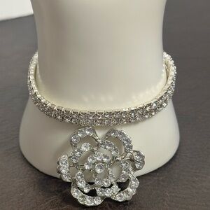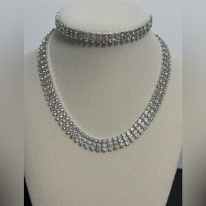 Napier CZ Necklace, With Stretchy CZ Wrist Bracelet & Vintage CZ Brooch-3 Pieces