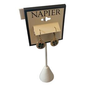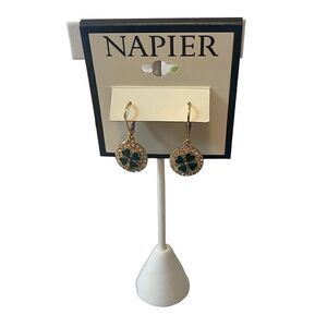 Napier Coin Drop Sparkly Shamrock Earrings in Green, Gold & Clear Pave Crystals