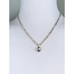 Napier Double Strand Rhinestone Teardrop Pendant Statement Necklace NWT