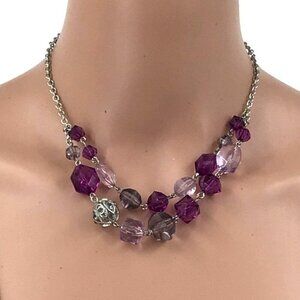 Napier Double Tier Beaded Necklace Silver Tone Purple Adjustable Length
