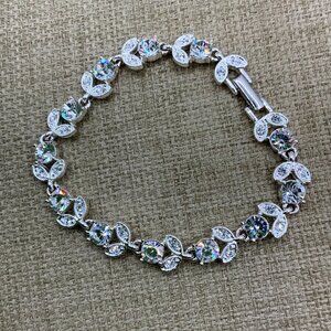 Napier Elegant Crystal Floral Leaf Silver Tone Bracelet