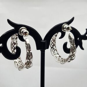 Elegant and intricate, these Napier Filigree Scalloped Edge Dimensional 1" Hoop Earrings with a silver tone are perfect for dressing up any outfit. They are in very good pre-owned condition. Please feel free to ask questions.