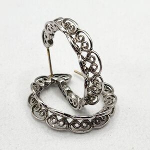 Napier Elegant Filigree Scalloped Edge Dimensional 1" Hoop Earrings Silver Tone