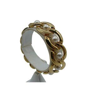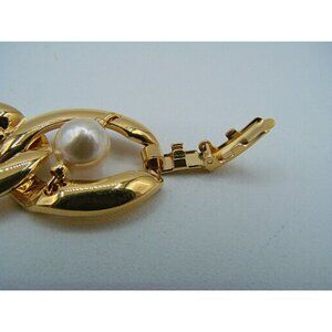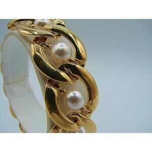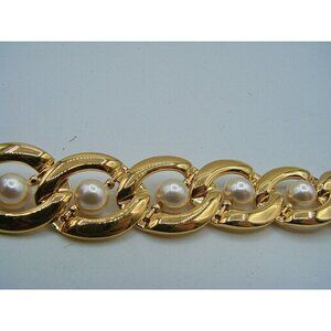 Napier Faux Pearl Chunky Gold Tone Oval Chain Link Fashion Bracelet 7" Vintage