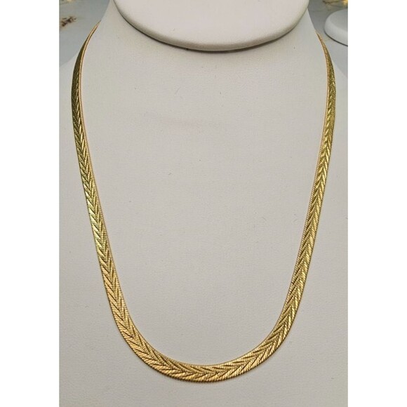 Napier Flat Leaf Pattern Gold Tone Chain Foldover Clasp 18"L