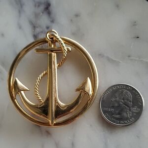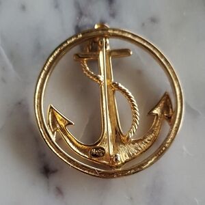 Elegant gold anchor brooch by Napier. Perfect for nautical style.