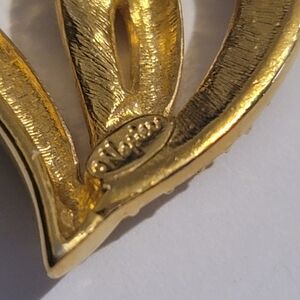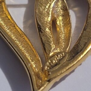 Napier Gold Tone Brooch Stylized Heart Brooch with Rhinestones Vintage Romantic