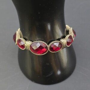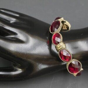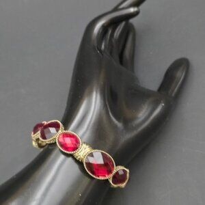 Napier Gold Tone Oval Beveled Red Crystal Stretch Bracelet Sparkly Signed